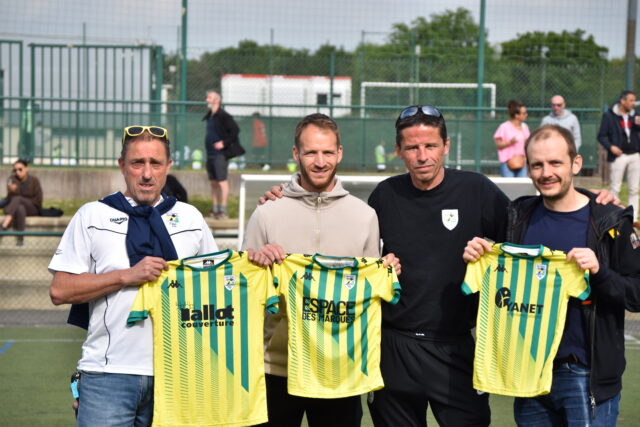 Nous tenons à remercier chaleureusement nos partenaires Espace des Marques, Tallot Couverture et Yanet, qui ont répondu présents lors de cette matinée. Grâce à leur soutien, le financement de ces nouveaux maillots a été rendu possible.